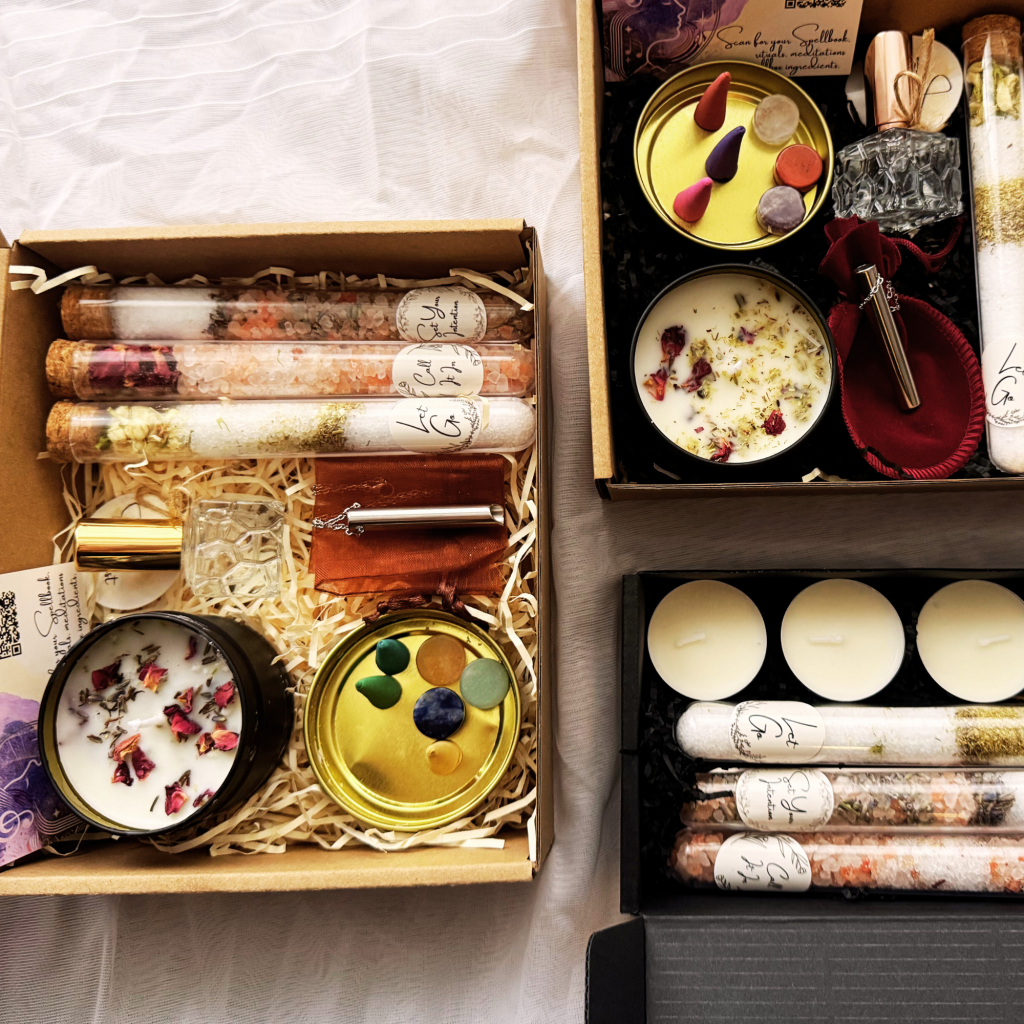 Hand-crafted ritual kits with bath salts, candles, crystals and incense — designed to shift your nervous system & focus your intention